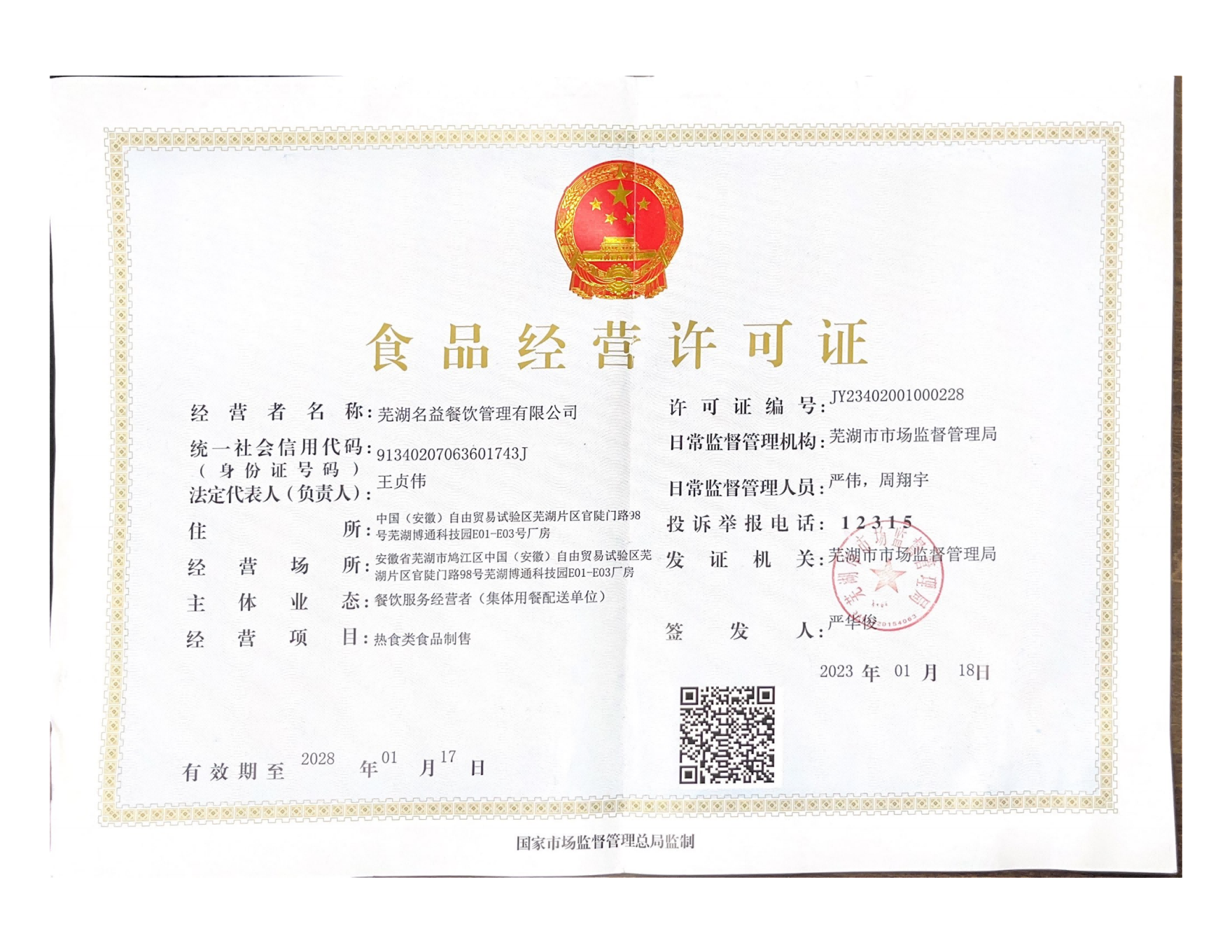 地址:蕪湖市鳩江區(qū)官陡門路98號(hào)博通科技園名益餐飲管理有限公司